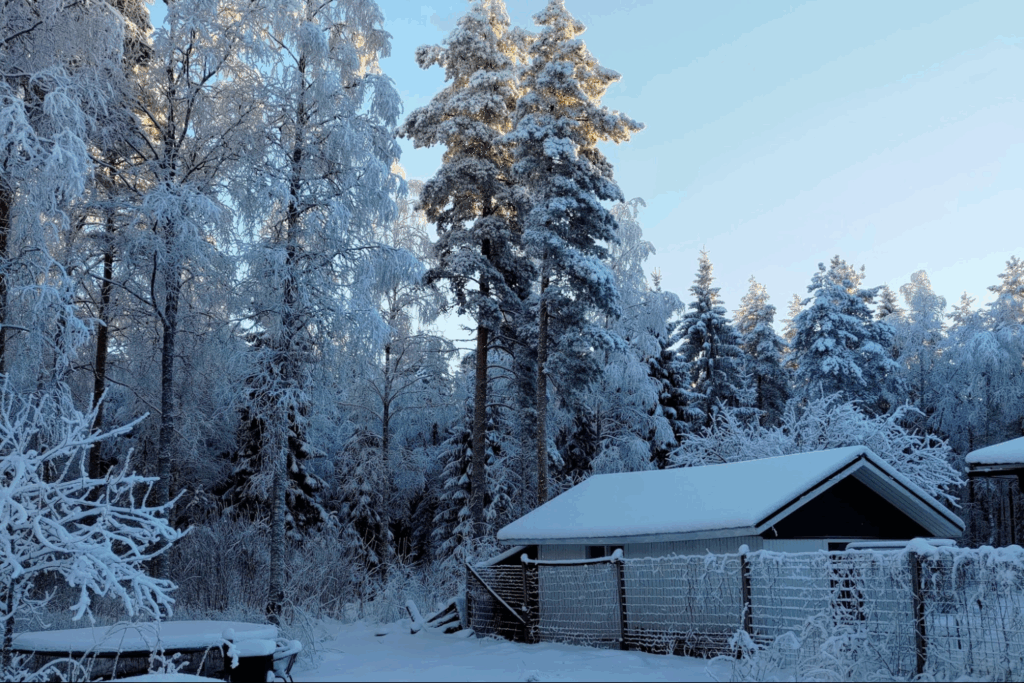 さあ、ヘルシンキから北上していくと列車の窓は雪景色ばかり。北に行くほど太陽がのぼりきらず、9時ごろに地平線から出てきた太陽は、ずっと日暮れかのようにぼんやりと空を照らして17時ごろにまた沈みます。