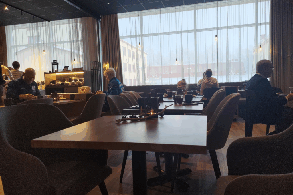 (ケミ駅のプラットフォームにあるCafe Hertta。学生さんや旅行客、地元の女性たちのおしゃべりでにぎやかでした。)