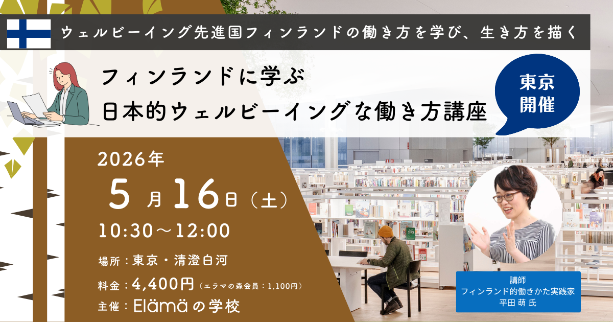 本講座では、世界幸福度ランキング上位のフィンランドの働き方や、人事経験10年以上の講師からみた日本独特の「頑張る人がしんどくなる理由」をお話しします。